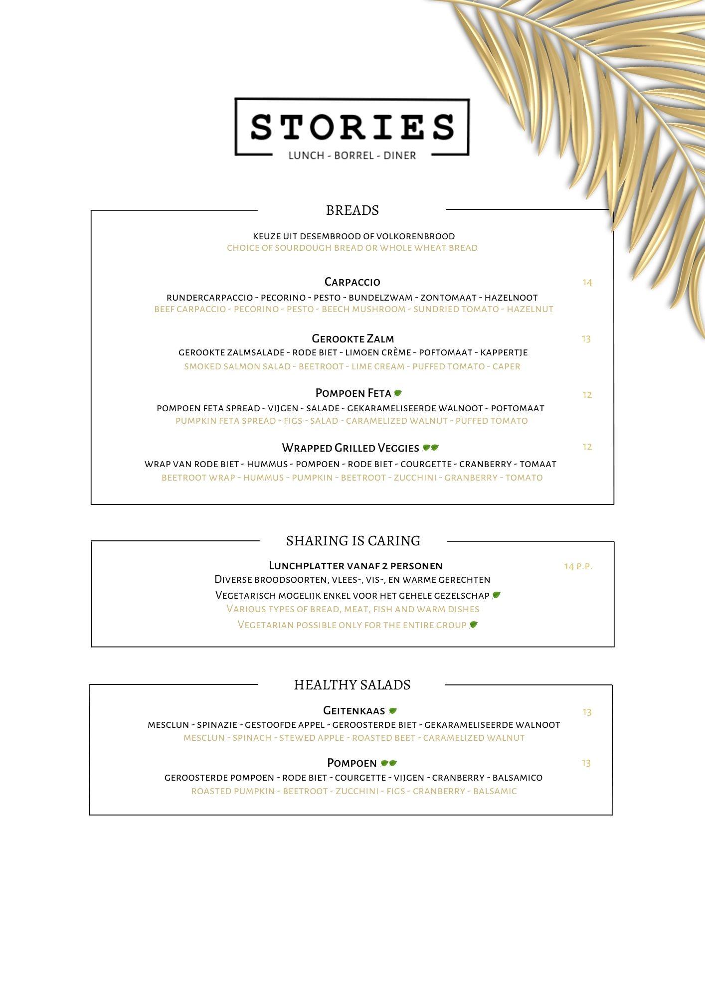 vegetarisch mogelijk, enkel voor het gehele gezelschap te verkrijgen